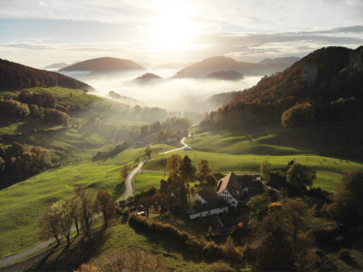 Das Kilchzimmer liegt oberhalb von Langenbruck im Basler Jura, eingebettet in eine ruhige Landschaft aus Wäldern, Weiden und Jurafelsen. Auf rund 920 Metern über Meer bietet der Ort Weite, Naturverbundenheit und einen idealen Rahmen für Lernen, Erholung und gemeinschaftliches Leben.